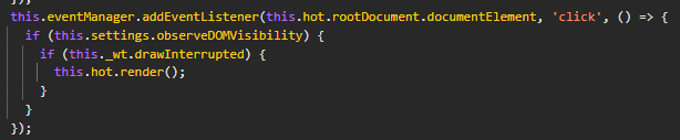 Hi. I have a view where there are multiple grids, some of which may be hidden at any given time. I noticed that when I click on a cell in one of the visible grids, all of the grids get rendered, which seems wrong to me.