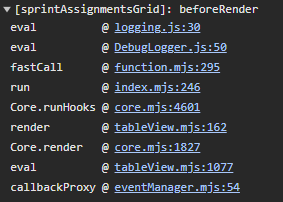 Here is what the first (listed at the bottom in the screenshot above) tableview.mjs:1077 trace has, showing the render() call: