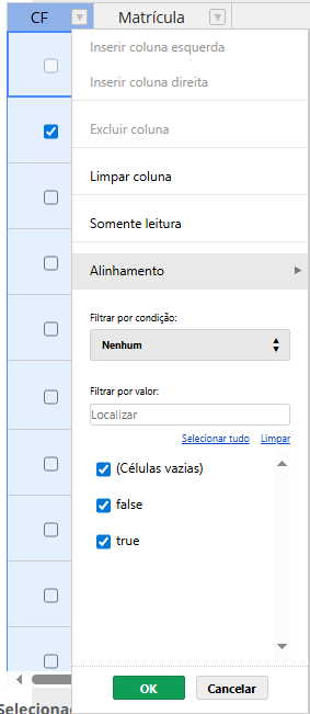 The problem occurs when I select or deselect one of the cells, causing the ‘false’ value to be duplicated in the filter.