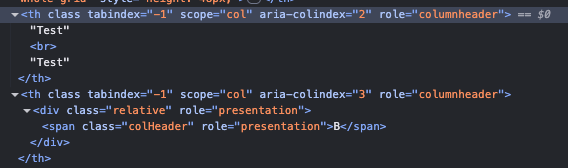 The header generated by Handsontable has a div and a span with some padding and other styling. We could, of course, reproduce this in the colHeaderHandler, but now we’re reproducing styling/markup that Handsontable would normally generate. This seems like a dangerous approach, what if something changes with how Handsontable creates column headers?