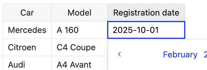 Then, when a value is manually edited within a cell editor that fits the format, it is understood and visualized as a correct date.