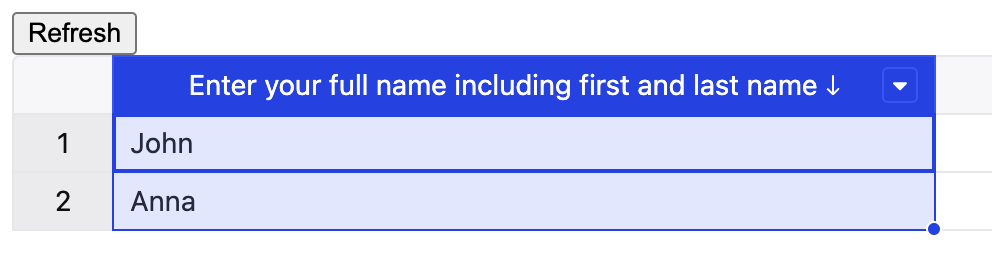 Is there a way to display the header title at 100% width so the text is not truncated, as shown in the image below? When I set columnSorting to false, the header displays correctly. However, when columnSorting is enabled, the header text gets truncated and shows ellipses (...). I would like to keep columnSorting enabled while preventing the header text from being cut off.