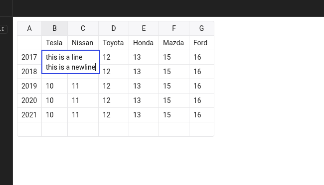 For my table, the cells should not have newlines in them (either from keyboard input or pasted content)