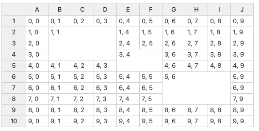 When we merge cells on the initialization, this is what we get