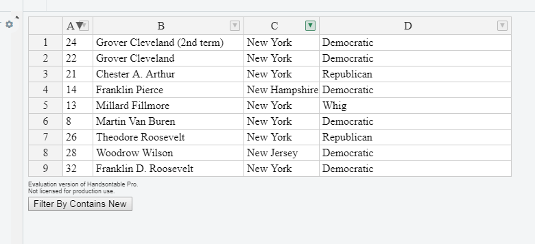 - Filter using the button I’ve added to the bottom of the table. (uses the Filtering API, it also breaks if you manually filter anything)