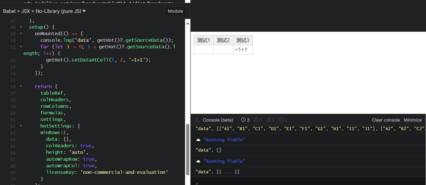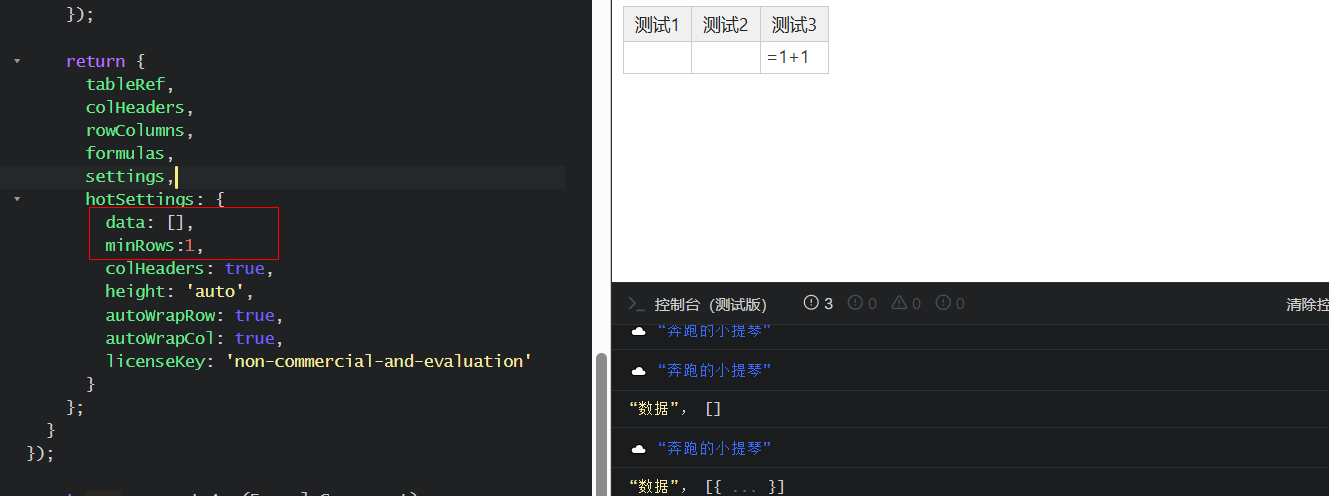 handsontable initializes data as empty, the table automatically generates the minimum row of data, and uses setDataAtCell to add the calculation formula. However, the table does not trigger the formula but directly displays characters, which needs to be triggered manually.